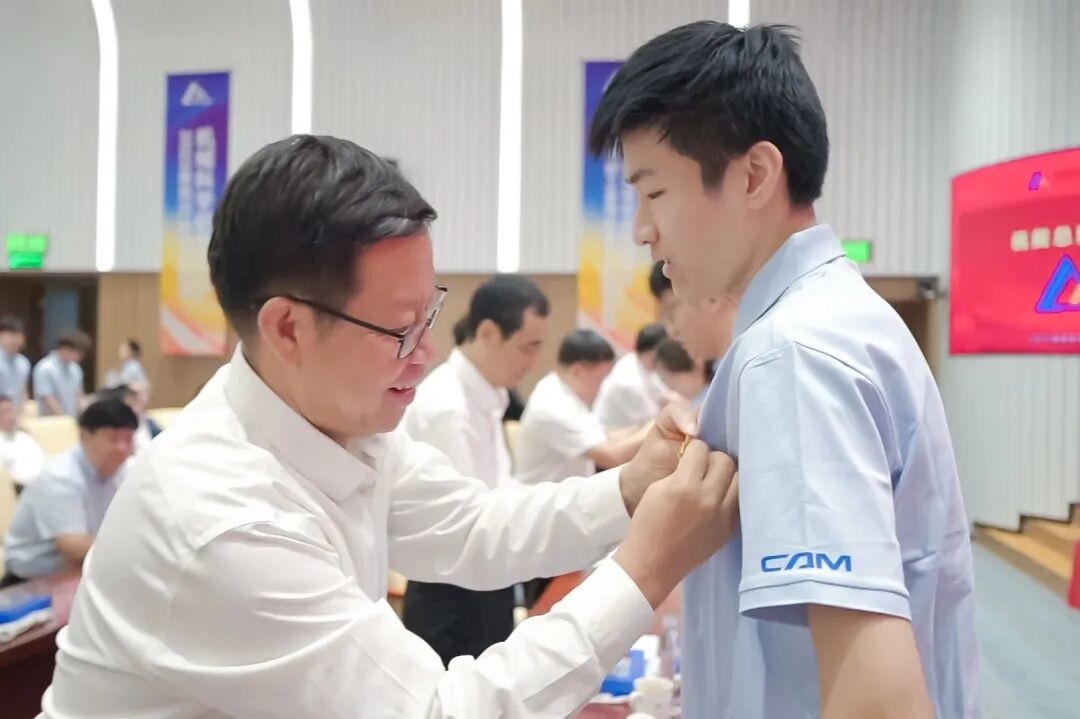 典禮上,王德成、李玉鑫及導師代表共同為新生佩戴總院徽章。這枚徽章不僅象征著中國機械總院人的身份,更承載著“以提升中國裝備制造水平為己任”的使命與榮光。優(yōu)秀導師獎、最受歡迎教師獎、新生入學獎學金和優(yōu)秀課程獎獲獎代表上臺領獎。新生代表手捧鮮花向?qū)焸儷I上誠摯敬意與節(jié)日祝福,表達莘莘學子的感激之情。